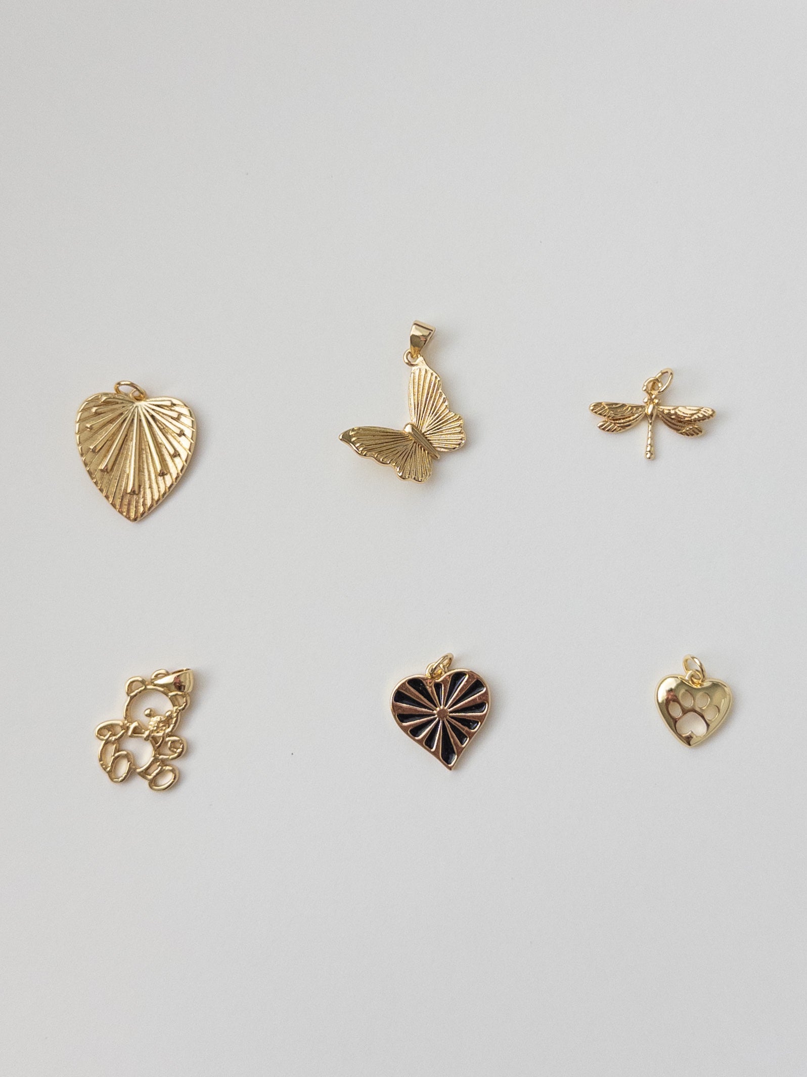 18k gold-filled charms. Each necklace is hand crafted and made unique for each customer. Charms will be attached to your necklace using a gold filled jump ring. Largest charm will sit center of the necklace. I do recommend an odd number of charms if you want the classic, spaced out look along the paperclip chain.