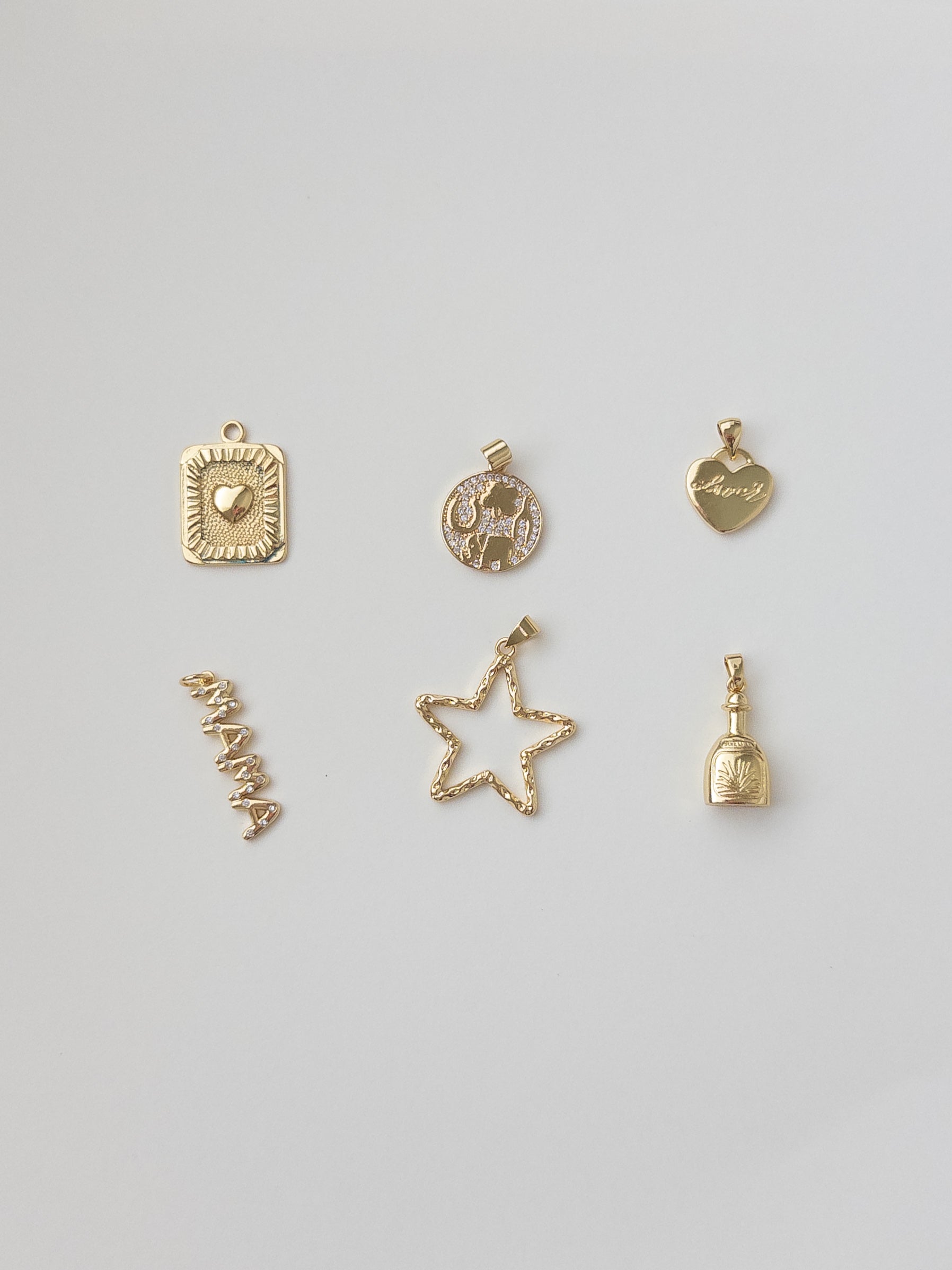 18k gold-filled charms. Each necklace is hand crafted and made unique for each customer. Charms will be attached to your necklace using a gold filled jump ring. Largest charm will sit center of the necklace. I do recommend an odd number of charms if you want the classic, spaced out look along the paperclip chain.