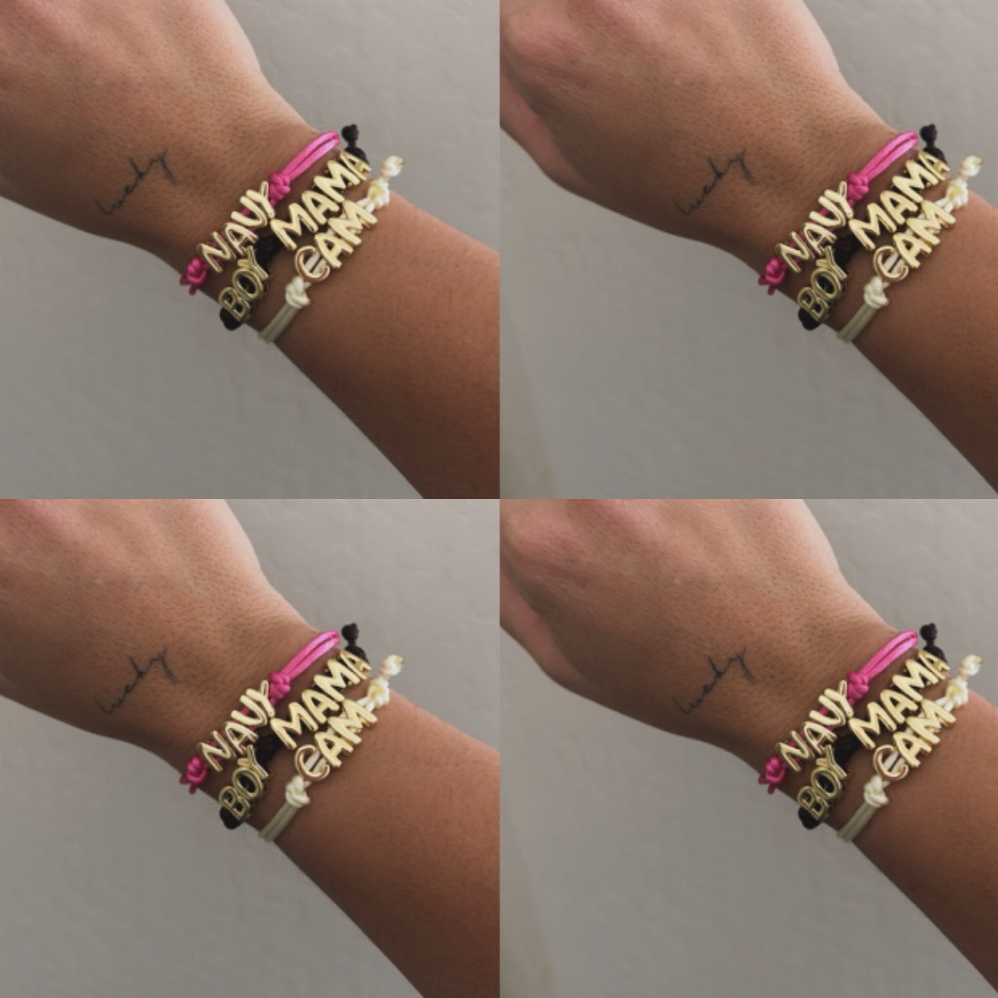 Handmade with 2.5mm nylon cording w/ a sliding knot I do not recommend wearing in the water