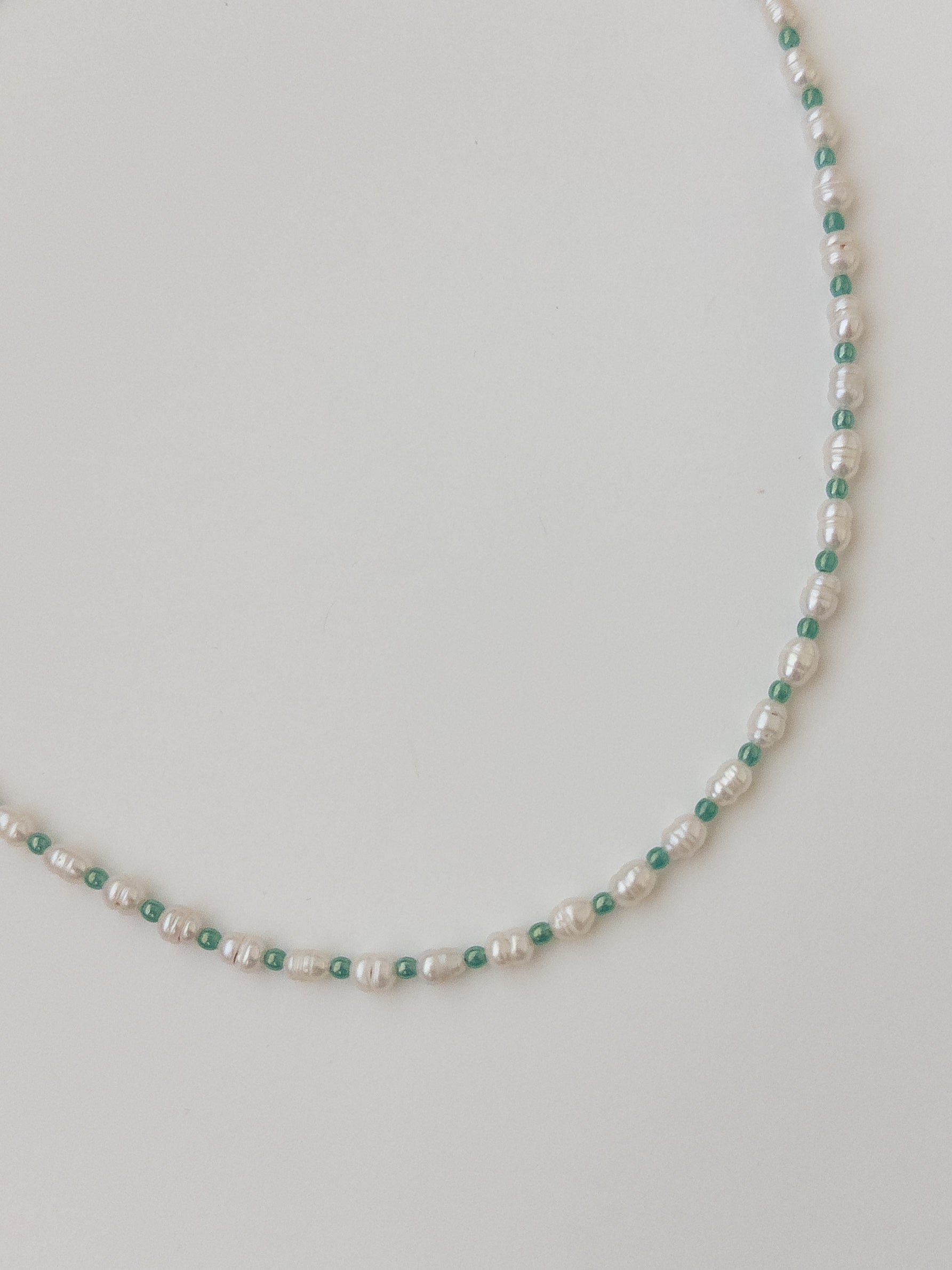 4-5mm freshwater pearls and fire polished spacer beads 16” plus extender.